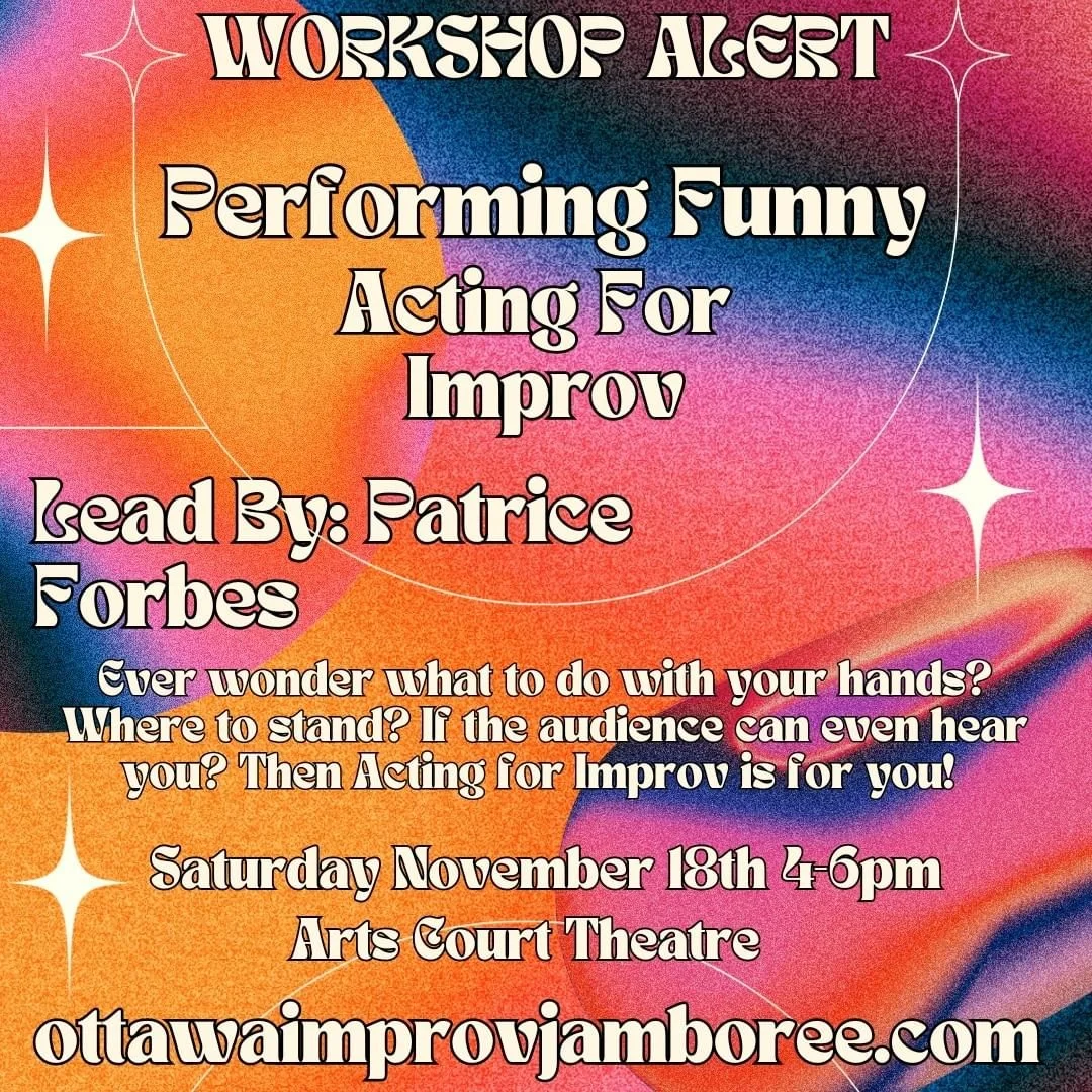 Ever wonder what to do with your hands? Where to stand? If the audience can even hear you? Then Acting for Improv is for you! Patrice is a theatre performer, award nominated director and producer of the theatre company Dead Unicorn Ink. With over twenty years experience in live performance, they want to help you pull focus and sparkle on that stage. In this workshop you’ll learn projection, how to read a room for audience interaction, painting a picture with levels and spacing and what to do with those gosh darned hands!